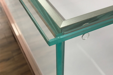 制作工藝:采用9厘UV板為基材,面貼5厘鏡面玻璃,開模制作鋁合金型材對角拼接,10厘超清超白鋼化玻璃臺面,鋁合金型材抗氧化處理,拉絲效果、電泳防指紋技術